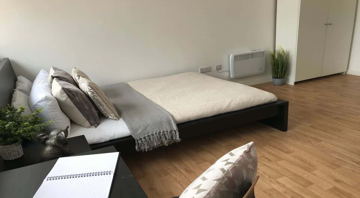 From 20m2 Deluxe self-contained studios are fitted with a large bed, wardrobe, chest of drawers, study desk and kitchenette. The studio en-suite is fitted with a power shower.