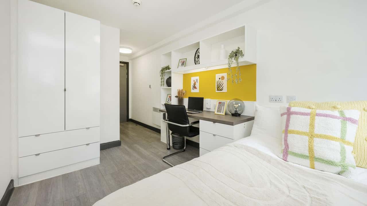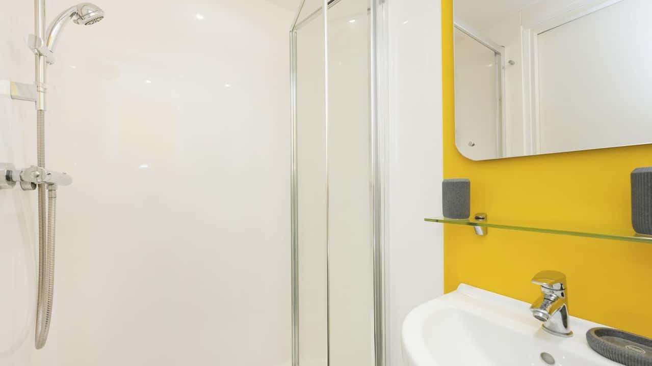 Spanning approximately 20sqm, our Superior Ensuite Rooms are designed for those who value extra space and style. Located on the middle floors, your own ensuite includes a small double-bed, study area, shower room, superfast WiFi/broadband and access to all on-site facilities. The shared kitchens are complete with a fridge/freezer, a free-to-use washer/dryer, dishwasher and a stunning lounge area with comfortable sofas and a flat-screen TV – a perfect space to relax with your flatmates!