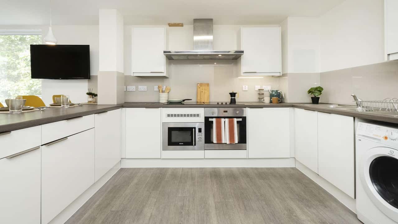 Situated on the middle floors, our Premium Ensuite Rooms offer approximately 17sqm of well-designed living space. Your own ensuite includes a small double-bed, study area, shower room, superfast WiFi/broadband and access to all on-site facilities. The shared kitchens are complete with a fridge/freezer, a free-to-use washer/dryer, dishwasher and a stunning lounge area with comfortable sofas and a flat-screen TV – a perfect space to relax with your flatmates!