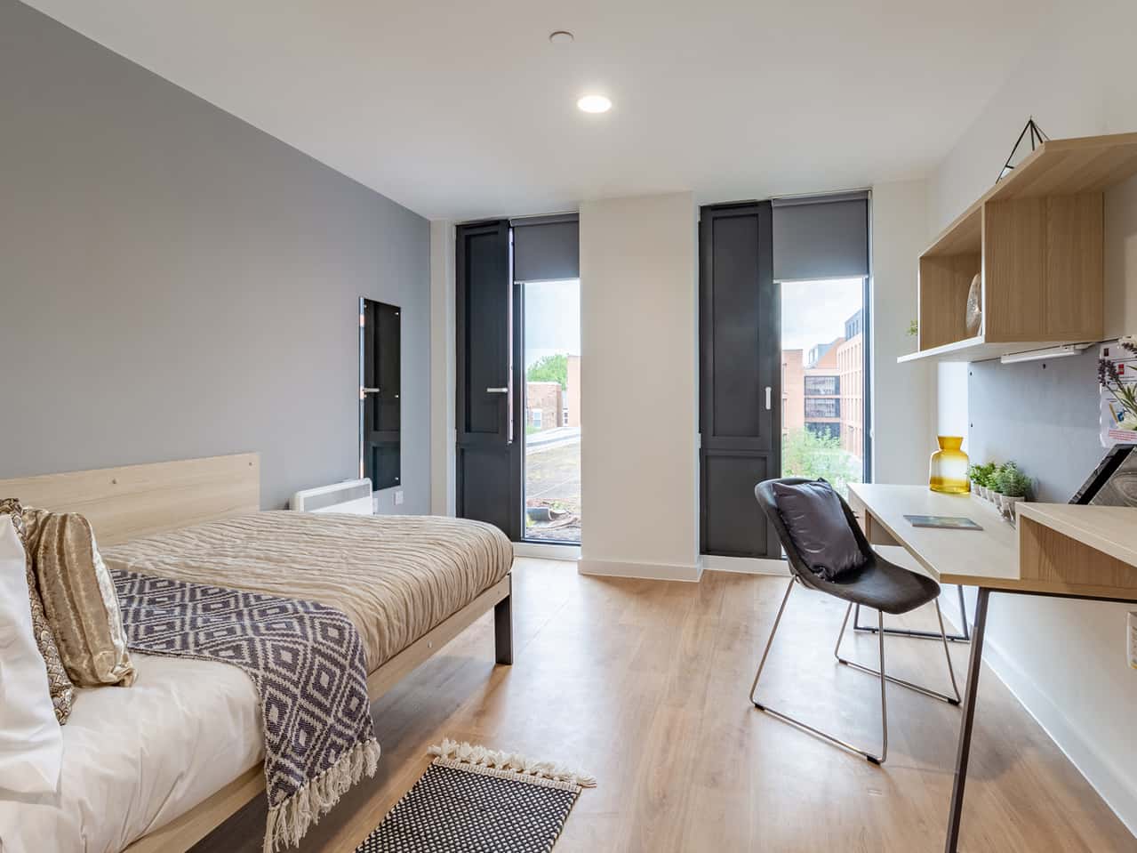 This large studio room, measuring a 17.4 square metres, comes with a ¾ sized bed, study area, modern kitchenette, en-suite bathroom and ample storage. You will have access to amazing communal rooms such as a cinema room, study room and on-site gym. Book your room today!