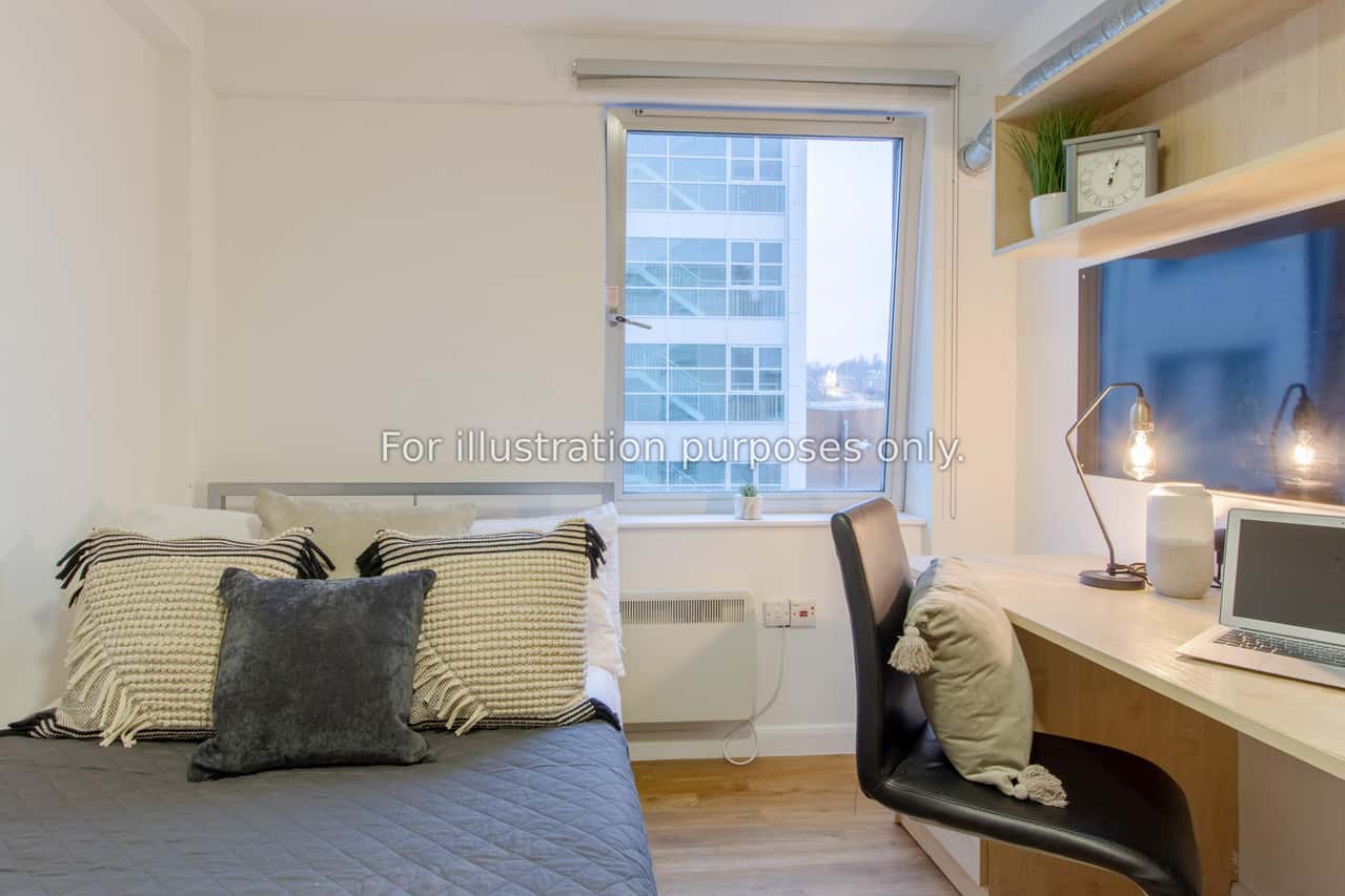 This bedroom is part of either a 4 or 5 bed cluster. Your room will measure around 7.2-8m² and comes with a ¾ sized bed, study area and ample storage. The shared areas include 2 bathrooms, kitchen facilities and lounge area. You will also have access to the onsite laundry facilities and bike storage.