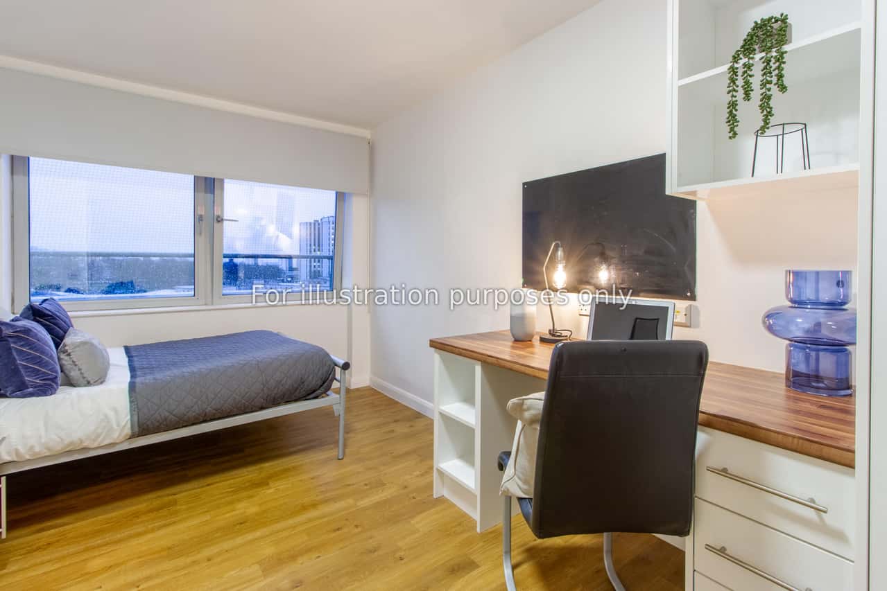 Our Larger Silver Plus 2 Bed offers so much in terms of space and amenities. Featuring a ¾ sized bed, study area and ample storage space. The shared areas include a bathroom, kitchen facilities and lounge area. You will also have access to the onsite laundry facilities and bike storage.