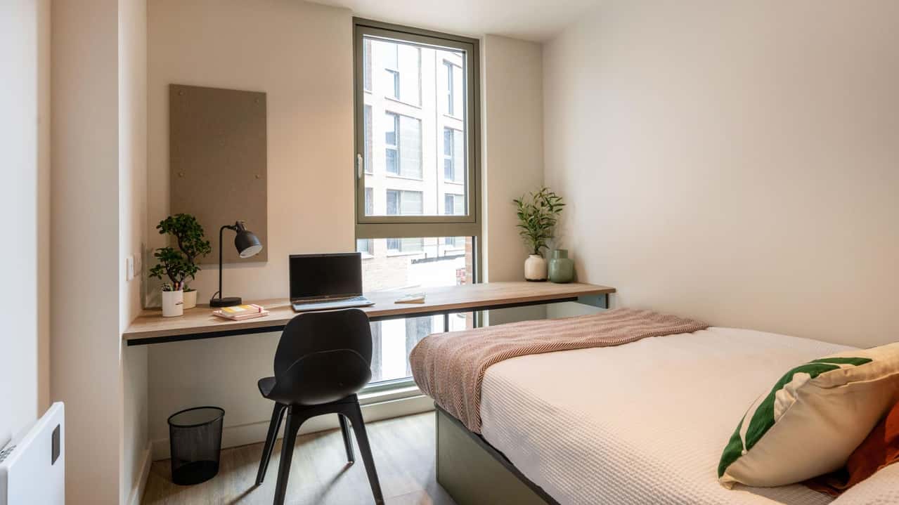 Onsite professional padel court available! ideal for fun, fitness, and making new friends. The Classic Ensuite is the perfect blend of comfort and style in 13.3 to 14.9 square metres of personal space. With a super-comfy bed, private bathroom, and a dedicated study setup, you've got everything you need to settle in and focus. In **clusters of 12, 10, or 9 beds**, the shared kitchen has all the essentials for whipping up quick meals with friends, and ample storage space keeps your room organised. Ideal for students who love a cosy space and a social buzz just steps away!
