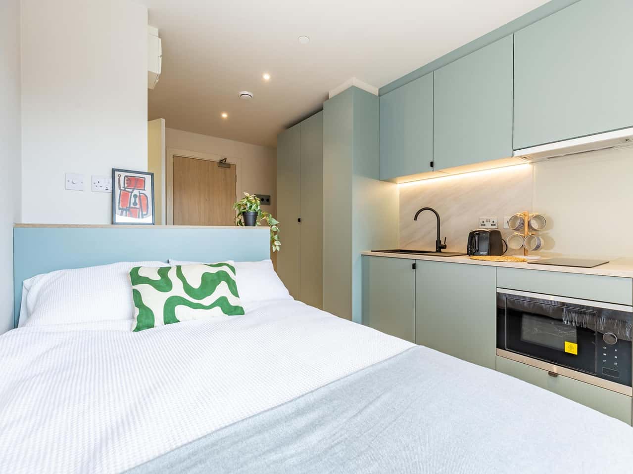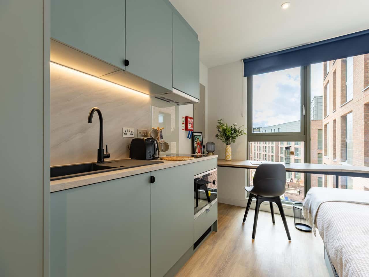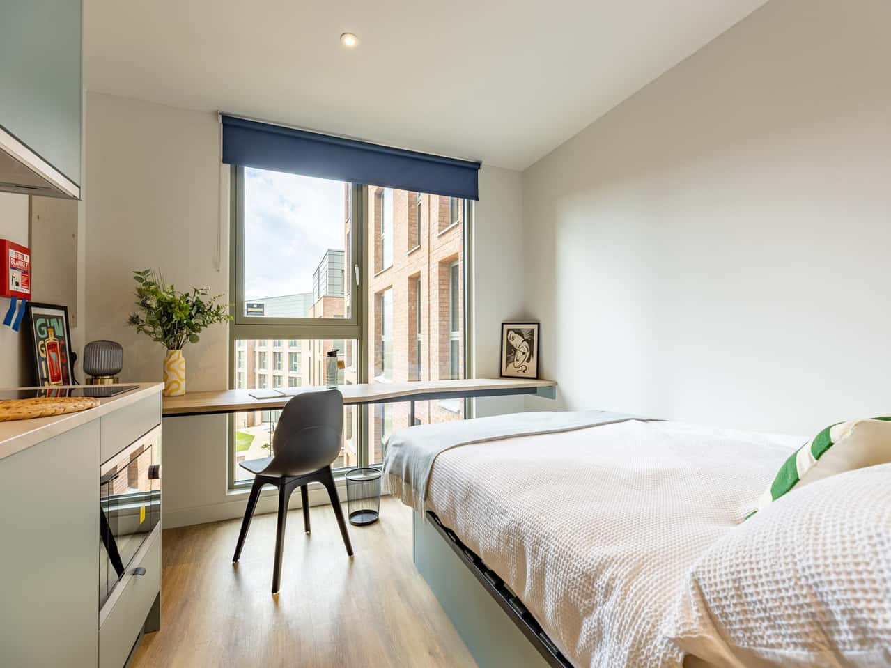 Onsite professional padel court available! ideal for fun, fitness, and making new friends. The Bronze Studio offers 16.3 to 18 square metres of cosy, well-designed space for ultimate privacy and comfort. The room includes a comfortable bed that’s perfect for a good night’s sleep, a private bathroom with a modern finish, ample storage space, and a dedicated study nook complete with a desk and chair to keep you focused. With your own private kitchen fitted with all the essential amenities, you have everything you need to cook up a meal or snack anytime. This studio is ideal for those looking to enjoy their independence, combining style and functionality in a compact space that’s entirely yours.