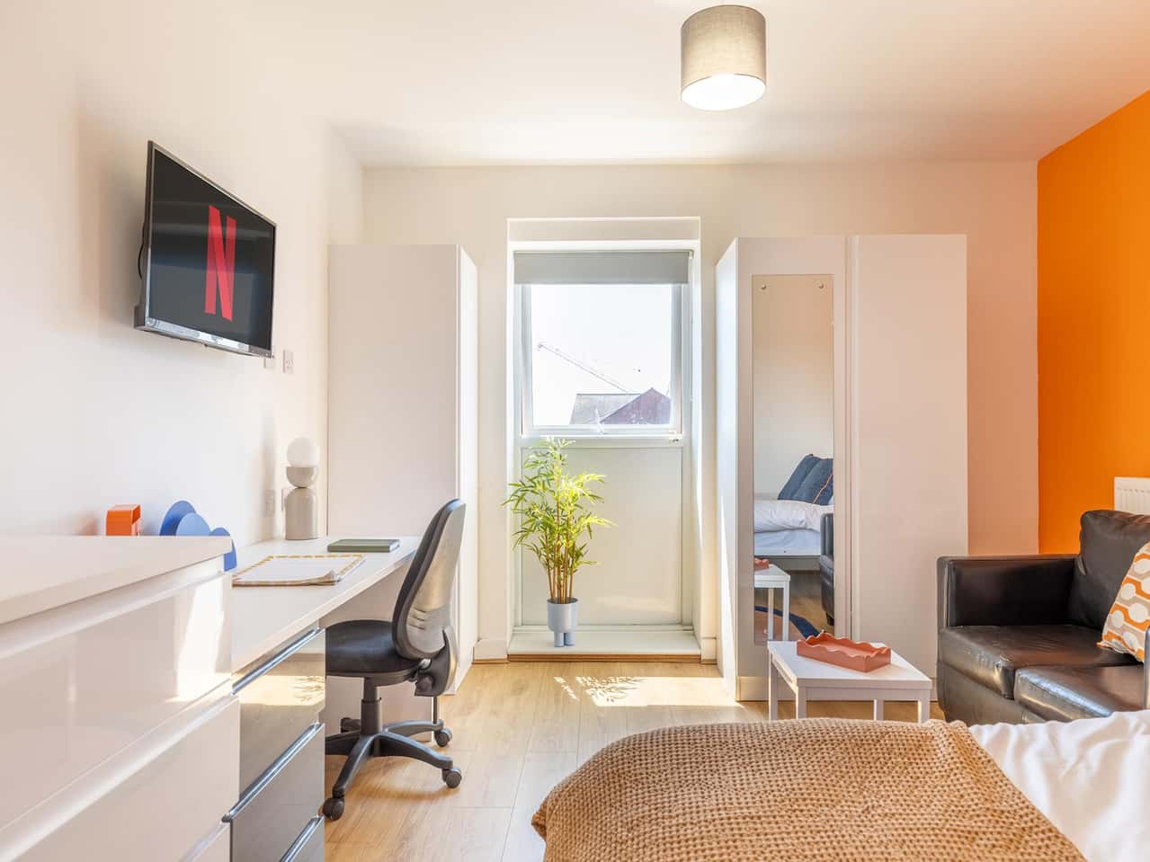 The Premium Studio offers 21.6 - 22.7 sqm of well-designed living space, giving you more room to relax and study. Enjoy a 3/4 bed, a dedicated study desk, and plenty of storage, including a wardrobe, bookshelves, and a noticeboard to keep you organised. The private kitchen is equipped with all the essentials, making home-cooked meals easy, while the modern en-suite bathroom adds to the convenience. Secure your Premium Studio today!