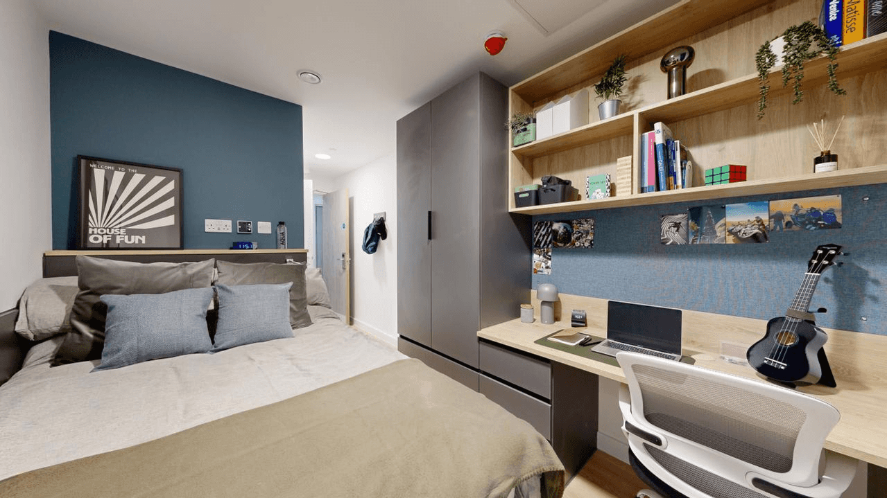 Designed for students who prefer a more intimate shared setting, the 4-Bed En-suite offers rooms with sizes ranging from 13.3m² - 13.4m². Inside, you’ll find a cosy bed, study desk, ample storage, and a private washroom, ensuring a comfortable and private living space. The shared kitchen is fitted with all essential appliances, along with a TV lounge, sofa area, and a dining table, making it perfect for socialising with a small group of housemates. Book your 4-Bed En-suite today for a great mix of privacy and community!