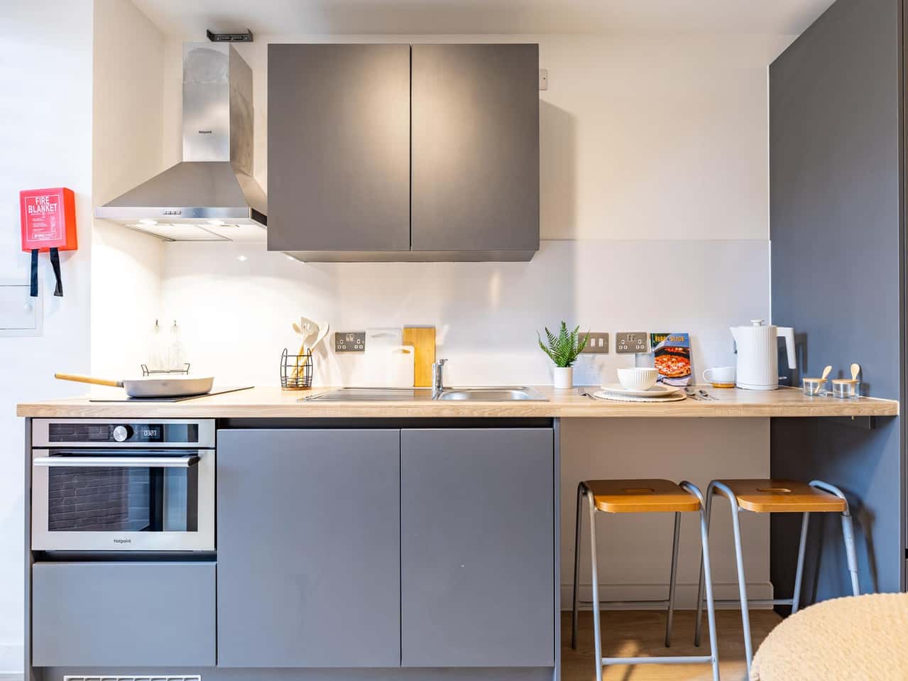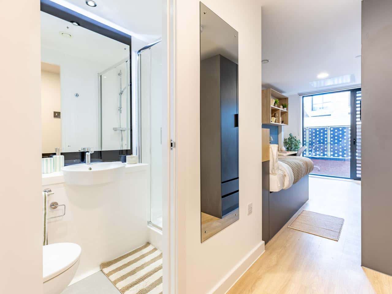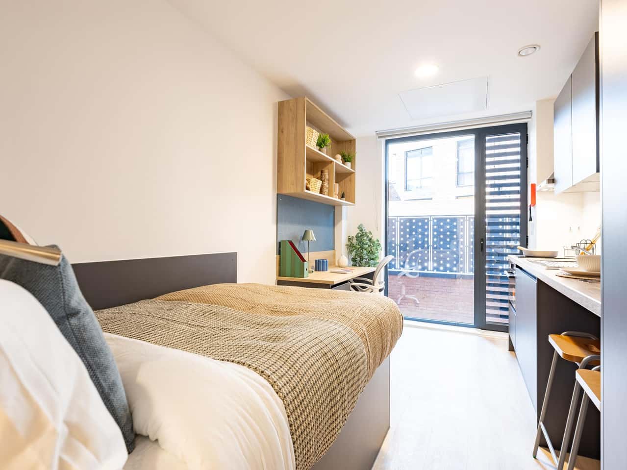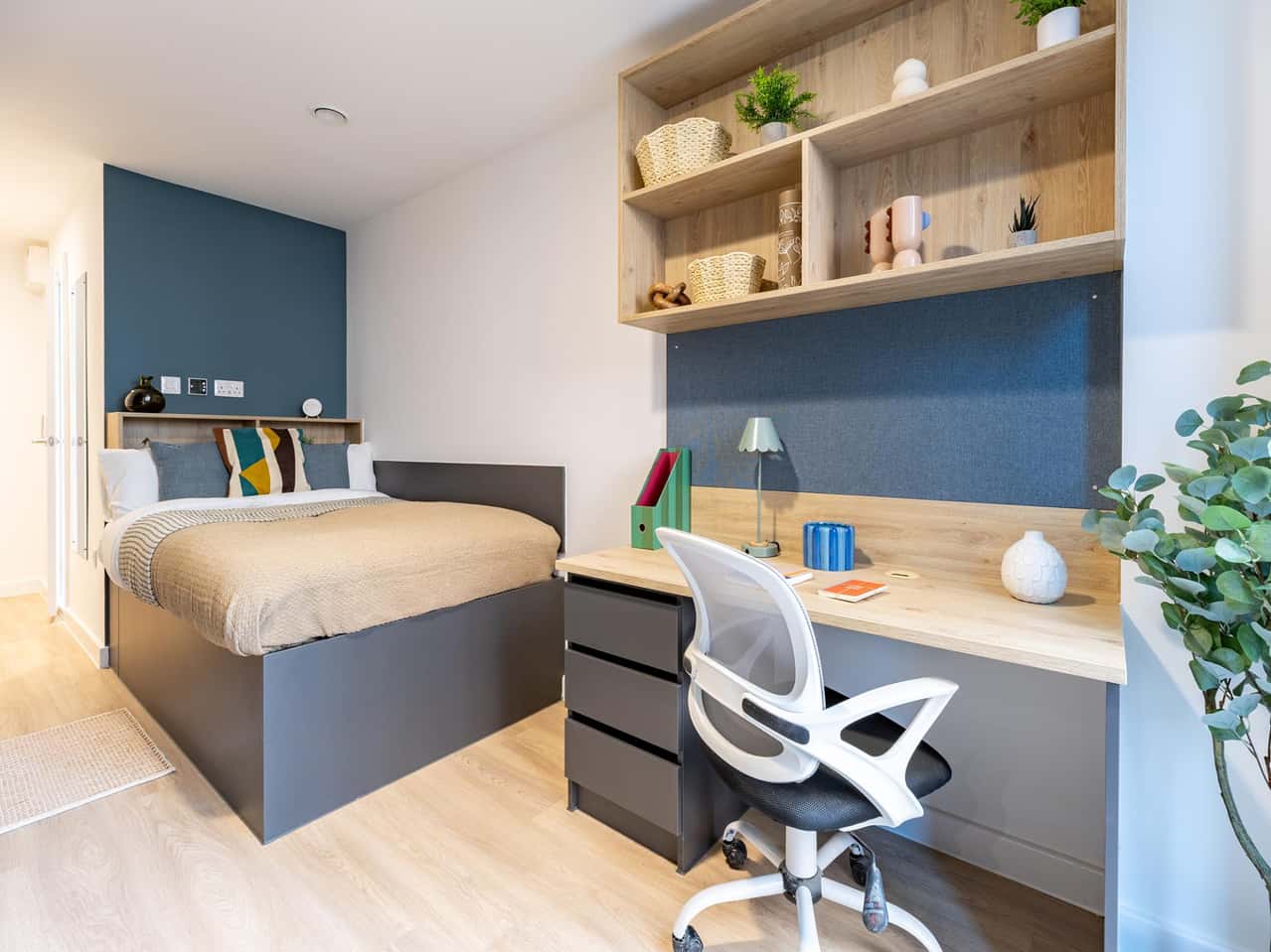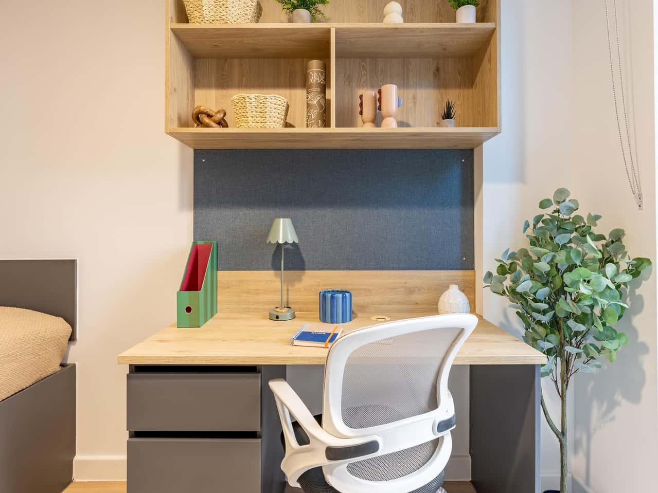 For those who prefer independent living, the Bronze Studio offers 17.7m² to 18.8m² of private and self-contained space on the lower ground and ground floors. Inside, you’ll find a cosy bed, study desk with chair, ample storage, and a private washroom. The kitchen area, equipped with a 2-ring ceramic hob, combination microwave/oven, and a fridge/freezer, makes meal preparation simple and convenient. Perfect for students who value their own space—book your Bronze Studio today!