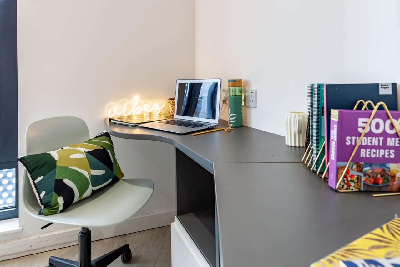 If you’re looking to stay at Medici and are keen to stay with like-minded people then our Classic Ensuite is the perfect choice. Measuring between 12.06m2 - 14.18m2 you’ll have your own bedroom featuring a small double bed with under bed storage, a private ensuite and a study desk and chair so you can meet your deadlines. You can spend time getting to know your flatmates in the shared kitchen and living area, or head downstairs to our fantastic communal spaces. With all-inclusive bills, free-wifi and broadband, be sure to book your room for the next academic year!