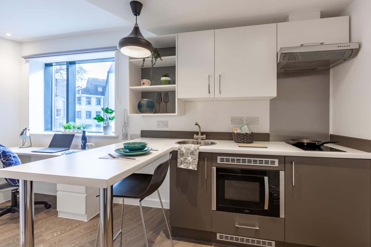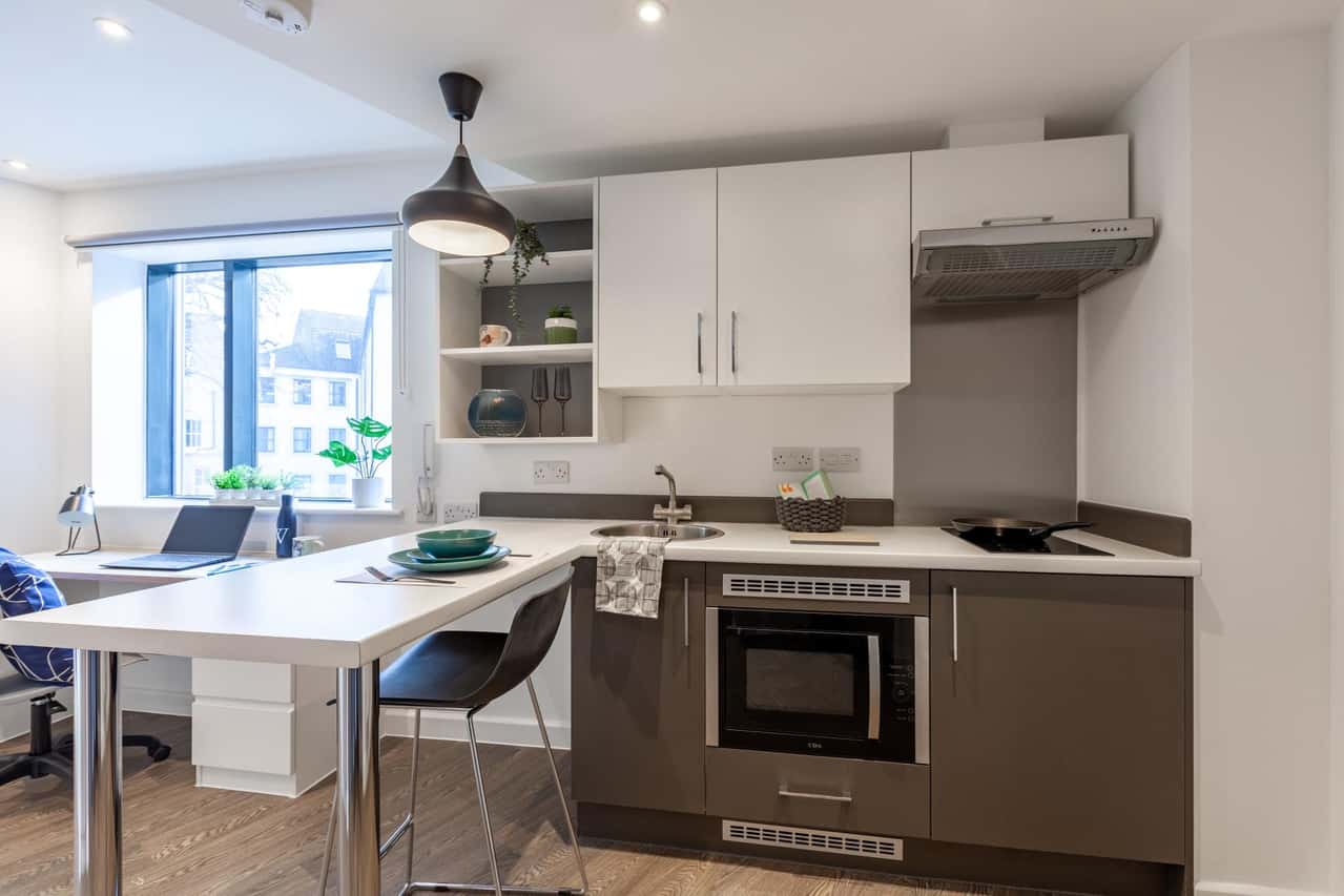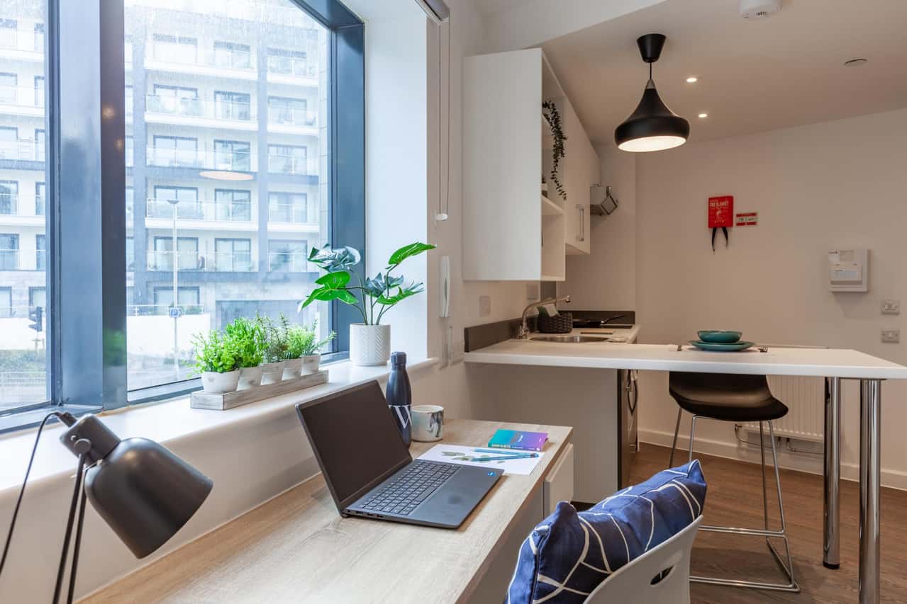 You can find our Classic Studios on all floors at Saltwater Place. Each studio is 16m² of pure comfort, featuring luxury furnishings, sleek aesthetics, and great window views. You'll never want to leave! Inside, you have a cosy bed with storage underneath and your own desk for tackling university deadlines. The room also includes a chic, private kitchen with all the essential amenities, allowing you to easily prepare meals or host friends. Get in touch with our friendly team to arrange a viewing and discover the art of luxury living in Plymouth.