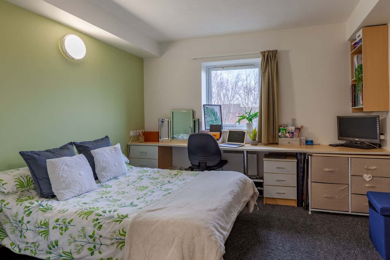 Our Studio room style comes fully furnished to the highest standards with a comfy bed with over-bed lighting and underbed storage to keep your belongings tidied away. You’ll also have your own en-suite bathroom for those late night showers and a study space for completing your university work. Wanting to cook up something tasty for dinner? Your kitchen area has all the amenities you could need including a dining table and chairs, fridge/freezers, oven , hobs and microwave. It also comes with a ironing board and hoover! Don’t worry, you can still meet new people at Leighton Hall with our communal lounge featuring a TV, plenty of comfy seating and a pool table. Plus our property location is right in the heart of Preston so you can experience all of the wonderful things to do and see in the city. What’re you waiting for? Sort your room out for the next academic year!