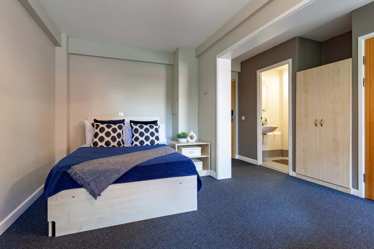 Our Premium Plus Studio style rooms feature a comfortable double bed, wardrobe, chest of drawers, study desk with wi-fi connection, en-suite bathroom and fully equipped kitchen with a breakfast bar. With everything you’ll need for student living, this individual flat is a great choice for those looking for more privacy. Don’t worry if you do want to meet new people, The Forge has a huge student community and tons of facilities for you to make the most of whilst staying with us.