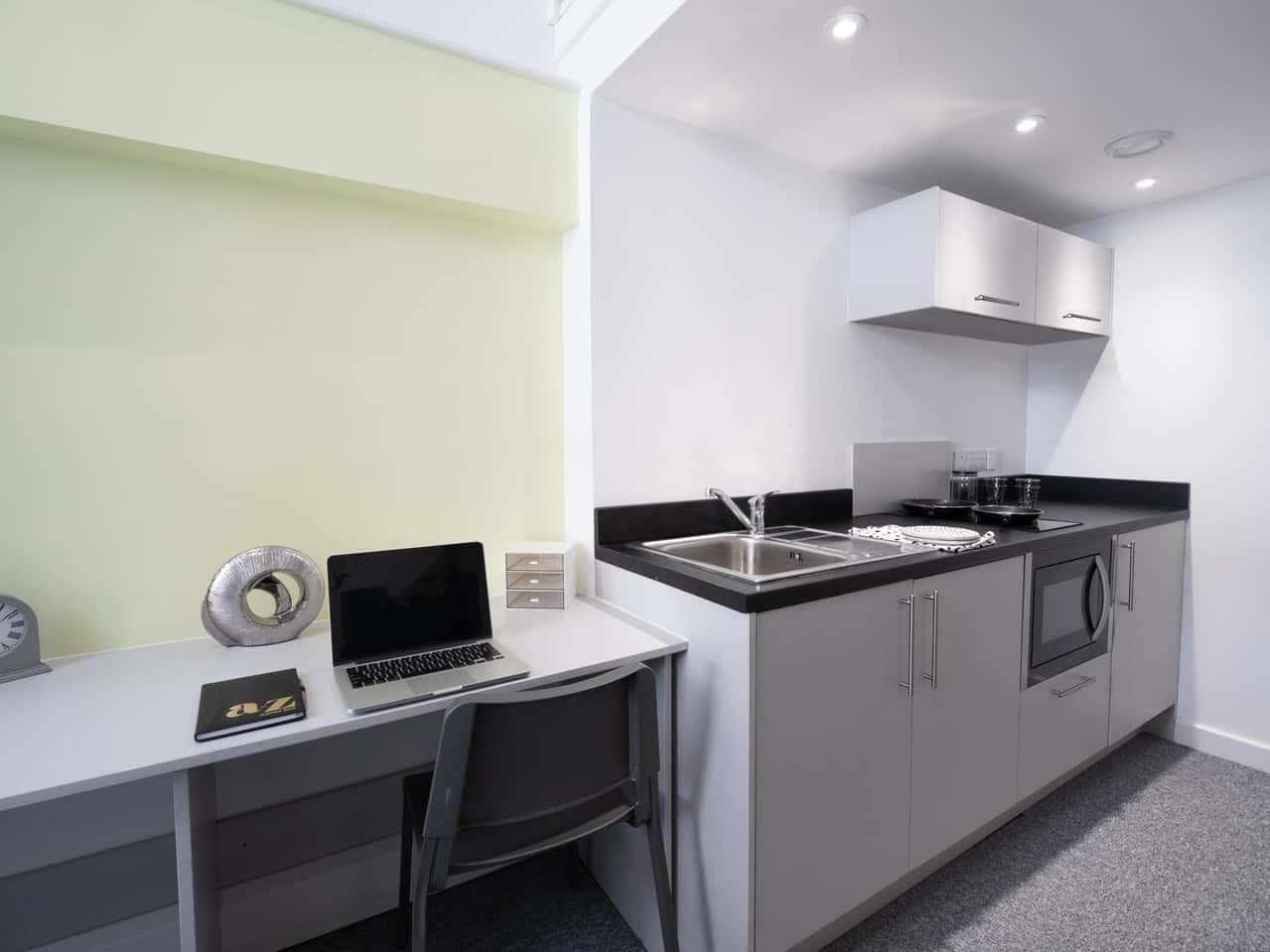 Step into our Duplex Studio, available in sizes ranging from 22sqm to 27sqm over 2 floors. Enjoy a spacious double bed with under bed storage and a 2-ring hob with an extractor. Store your belongings in the double wardrobe and freshen up in the en-suite bathroom. There's a full-length mirror, an integrated fridge with a freezer compartment, a microwave oven, and a pinboard. Work comfortably at the study desk with ample drawer space and a chair.