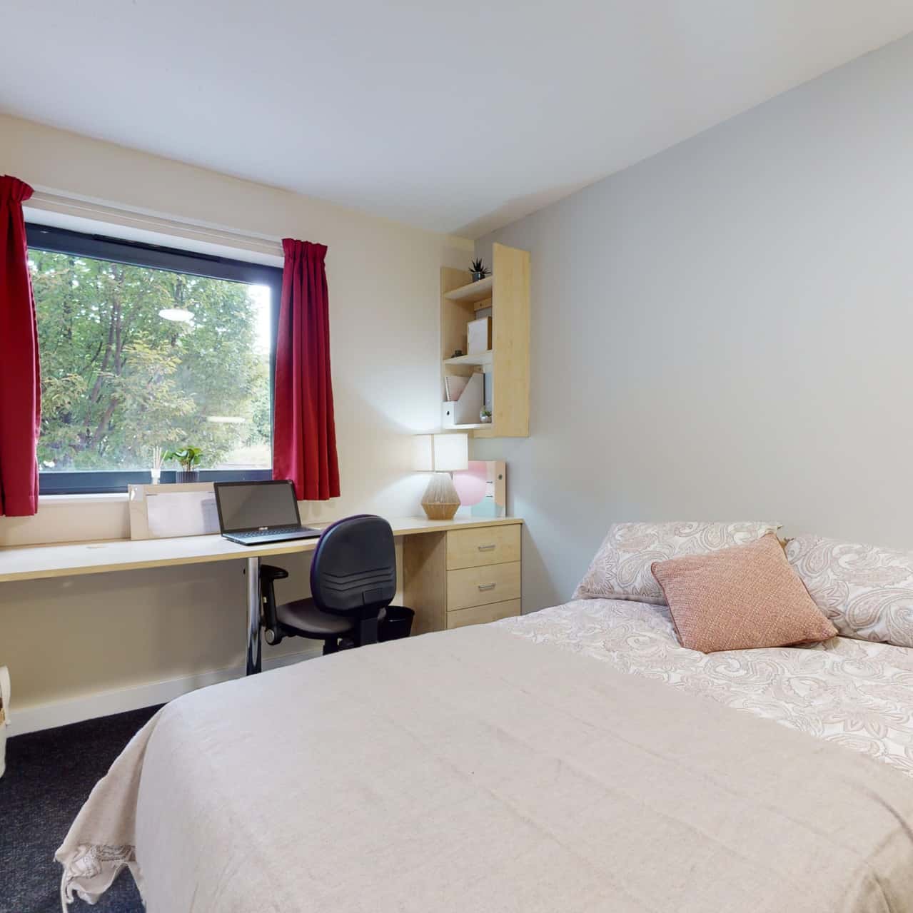 Our Classic 5 Bed Ensuite offers a vibrant and communal living experience. Each bedroom is equipped with an en-suite bathroom, a three-quarter sized bed, and a study space. The shared kitchen and lounge areas are perfect for bonding with your flatmates. Relax and have fun in the games room, featuring various activities to enjoy with your peers.