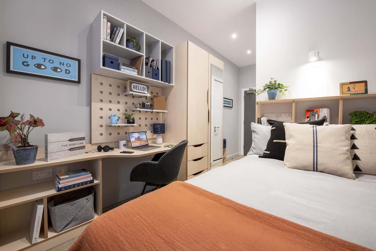 Experience comfortable living in the premium ensuite room within a 6-bed shared apartment, with room sizes ranging from around 12.94m2 to 12.97m2. Each room has a comfortable bed, dedicated study area and ample storage space. It has a shared modern kitchen for preparing your meals and a comfortable living room with a Smart TV, ideal for bonding with flatmates. The best part is that the shared kitchen comes with a washer/dryer unit, adding extra convenience to your everyday life! You will also have access to the communal facilities in the building, including a wellness studio, games room, and more. Book your room today!