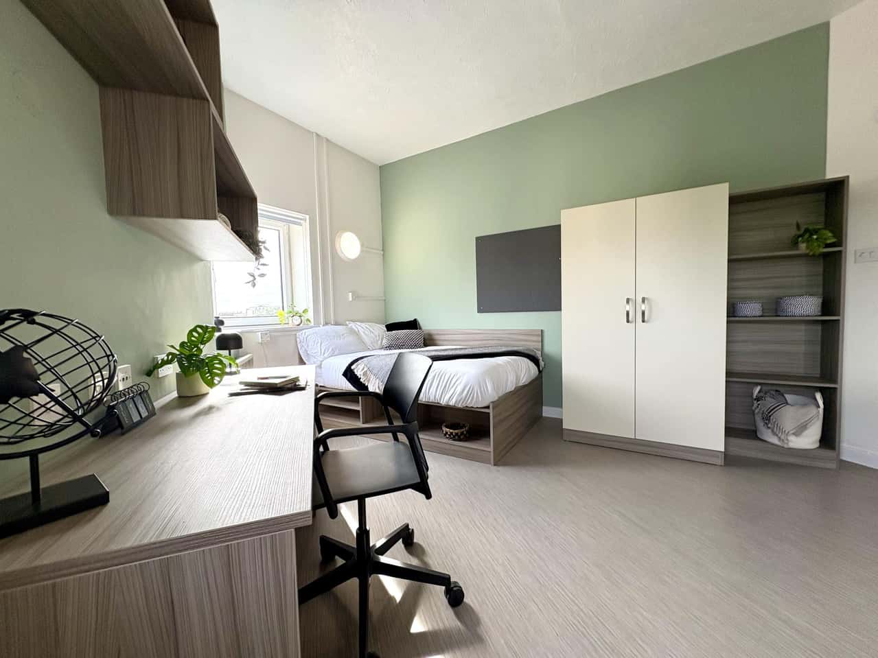 Step into our premium studio with 24 - 26 sqm space, designed to make student life comfortable and stylish! This modern space includes a cosy 3/4 size bed with under-bed and overhead storage, a dedicated study area with a handy pin board above the desk, and a private kitchen. Enjoy meals in your own small dining area, perfect for relaxing or hosting a friend. With a private washroom to complete the setup, this studio has everything you need. Be among the first to enjoy this upgraded space—book your spot now!