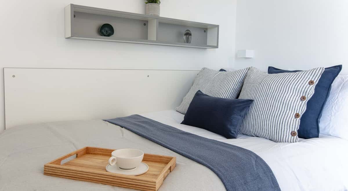 Unwind in our 16-square-metre room, featuring a cosy ¾ bed, convenient study space, and ample wardrobe storage. Join friends in the shared area's communal lounge, complete with a TV, for socialising and relaxation. Prepare delicious meals in the shared kitchen, and stay connected with high-speed 100Mbps WiFi available throughout the building. Book your room today!