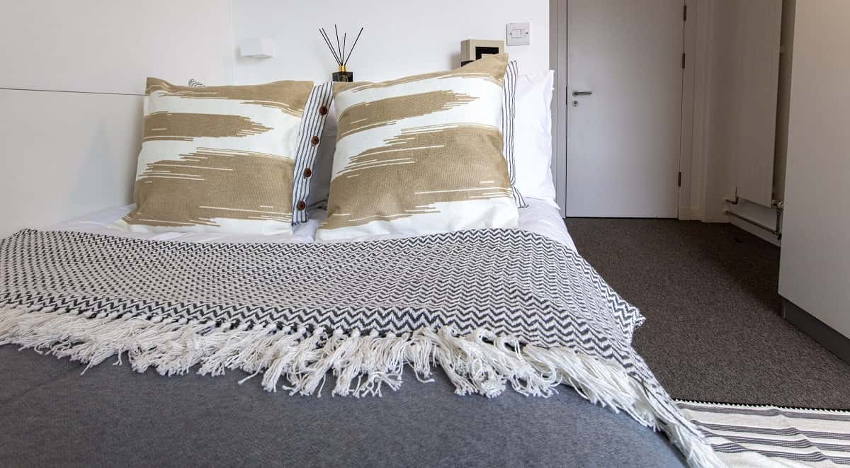 Relax and recharge in our fabulous en suite bedroom measuring 12.5m² with a comfy ¾ bed, a handy study area and a wardrobe. The shared area has a communal lounge with a TV, perfect for making new buddies! When it’s time for food, cook something scrumptious in the shared kitchen area and impress your mates with your skills. There’s 100Mbps WiFi throughout the building, perfect for uni work or catching up on Netflix!