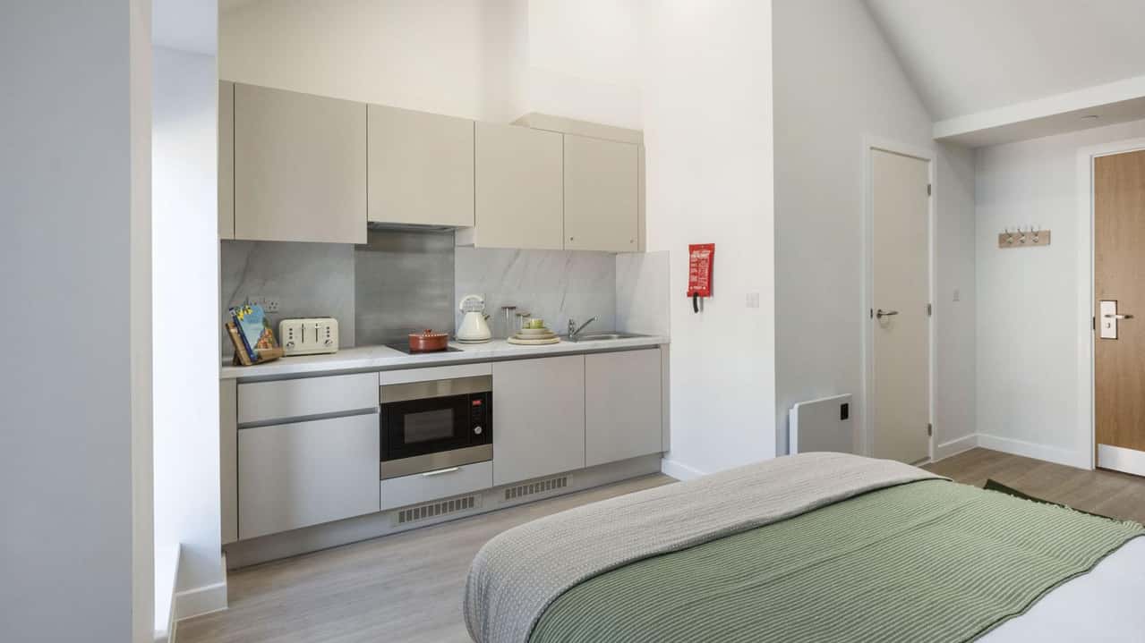 Located on Floors 1 and 2 with a layout spanning 20.6 to 21.6 sqm, the Classic Studio is a perfect fit for student life. This space includes a comfy bed, private washroom, and a convenient kitchen with all the essentials for cooking and dining. A dedicated study area provides focus for your academic work, and the spacious cupboard is ideal for storage. Settle into this well-designed space that balances comfort and practicality—make it yours today!