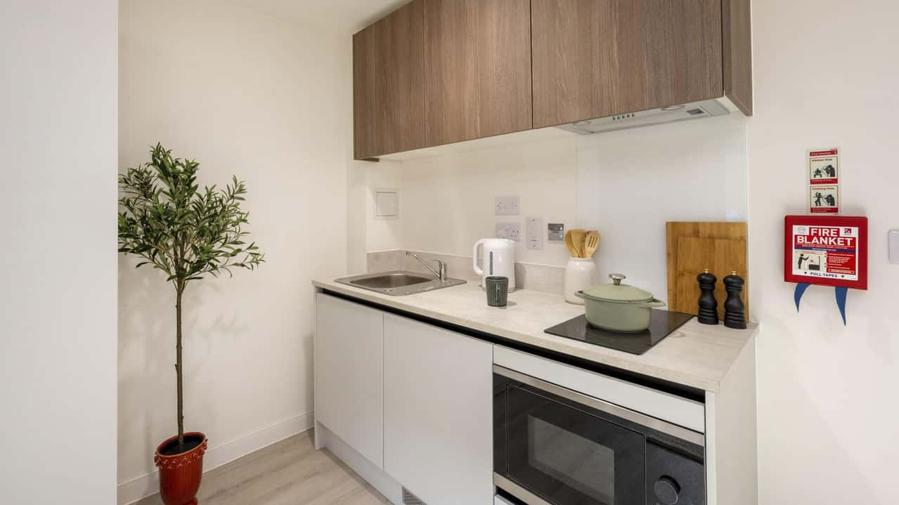The Superior Studio is the ultimate choice for independent student living. With a room size of 27.9m² – 32.8m², it includes a cosy bed, a study desk and chair, and a private washroom for added convenience. The wardrobe provides plenty of space for your belongings, while the private kitchen, equipped with all the essentials, makes meal preparation effortless. This studio offers a blend of style, comfort, and practicality for students who want it all. Book your Superior Studio now so you don’t miss out!